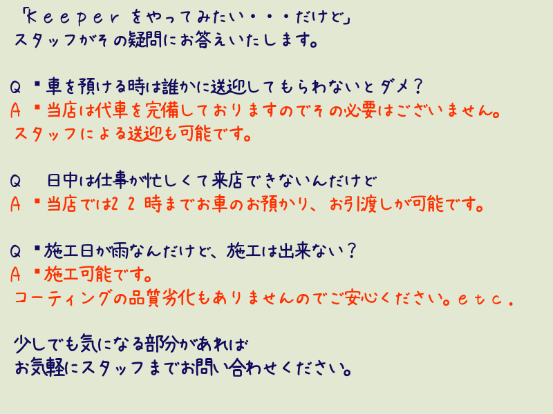 - 洗車・コーティング営業時間