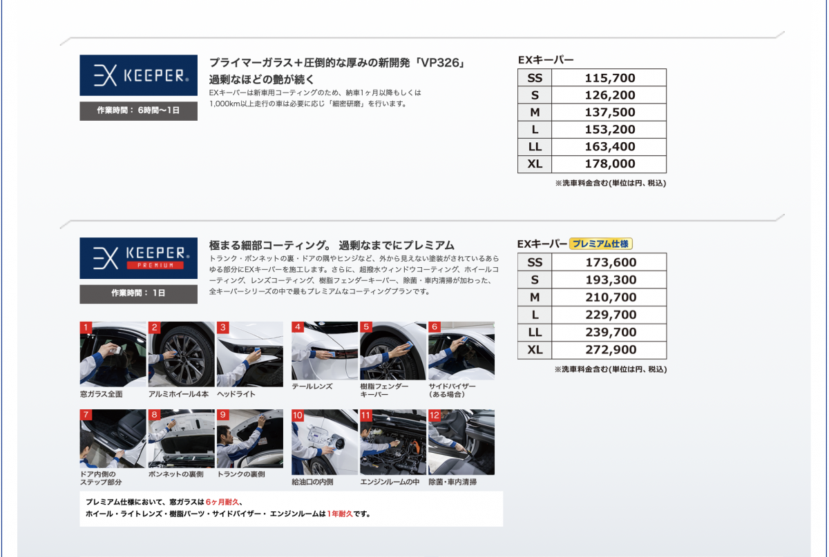 コーティングはもちろん洗車も含め全ての作業を最初から最後までEXキーパー技術者が行います。