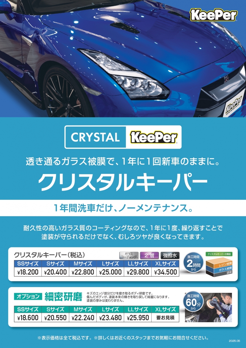 みなさんご存じ定番のクリスタルキーパー! 1年に1回の施工でキレイが続きます!!