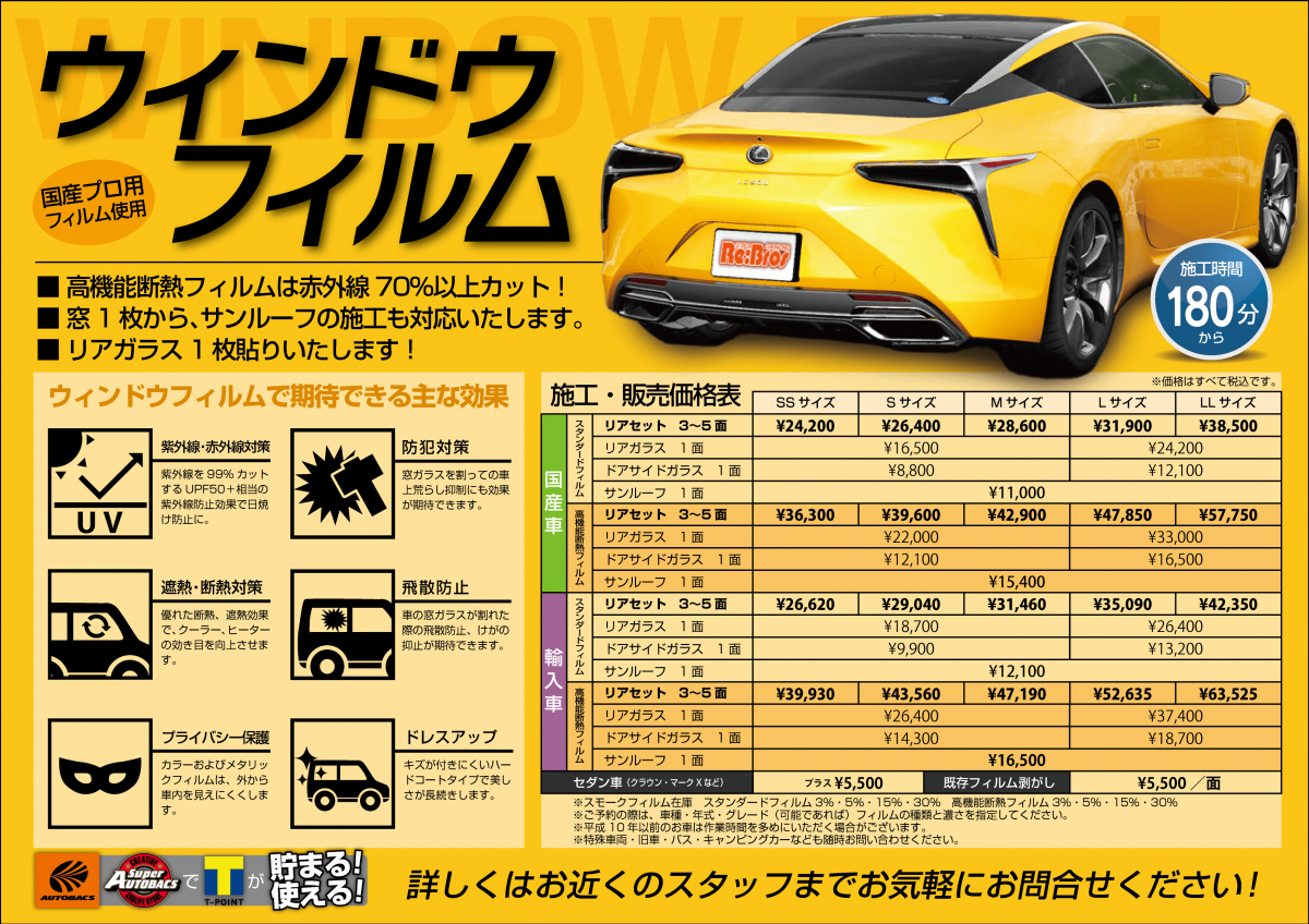 アラカルト・ウィンドフィルムメニュー紹介(^_-)-☆