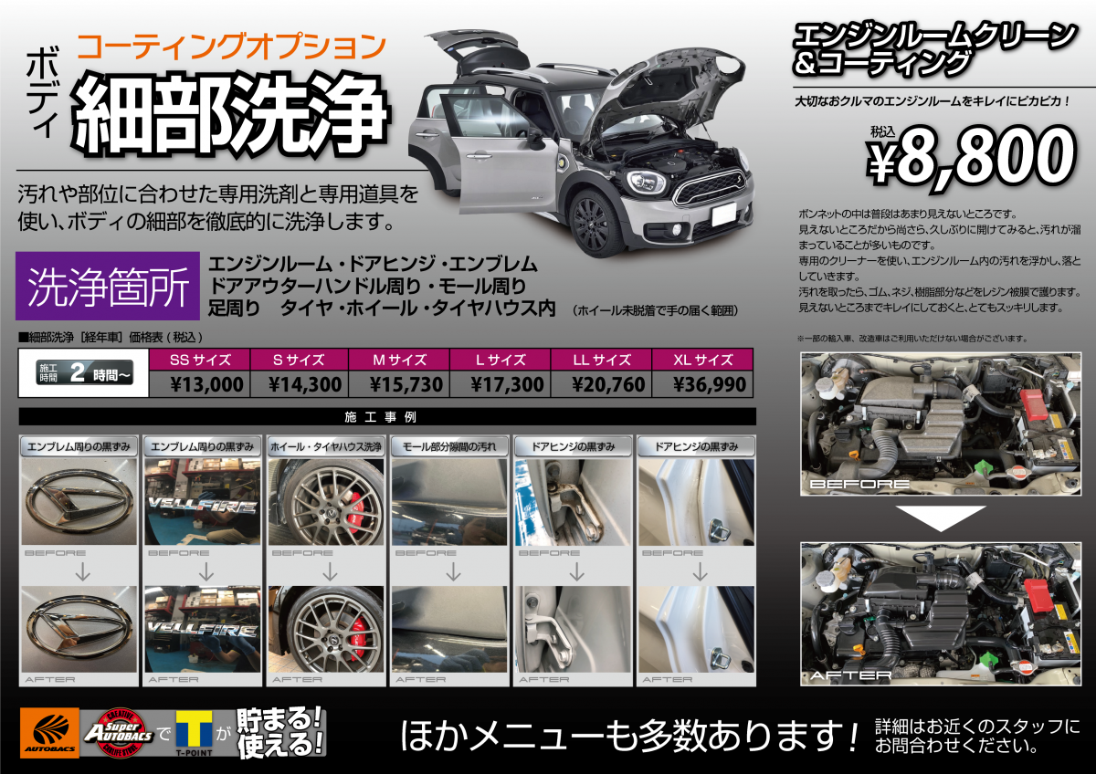 ★その他、様々なオプションもご用意しております★ 【外装】【内装】どこでも、気になる汚れ、臭いなどありましたら、当店にお気軽にお問い合わせください(^^♪