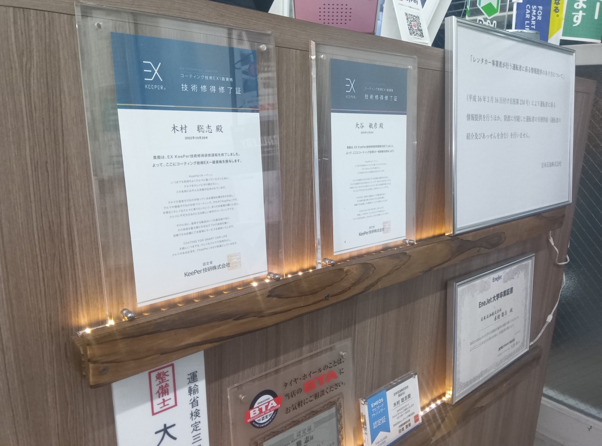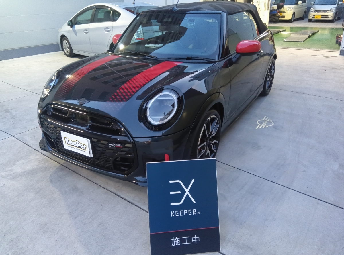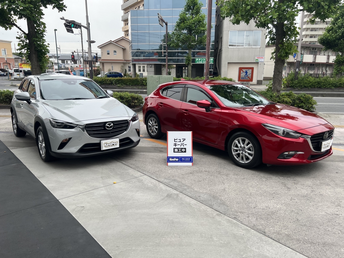 塗装を傷めない「爆ツヤ※」(濃い色の車にも有効)というKeePer独自のプロ専用のクリーナーでキレイに除去した上に、コーティングします。