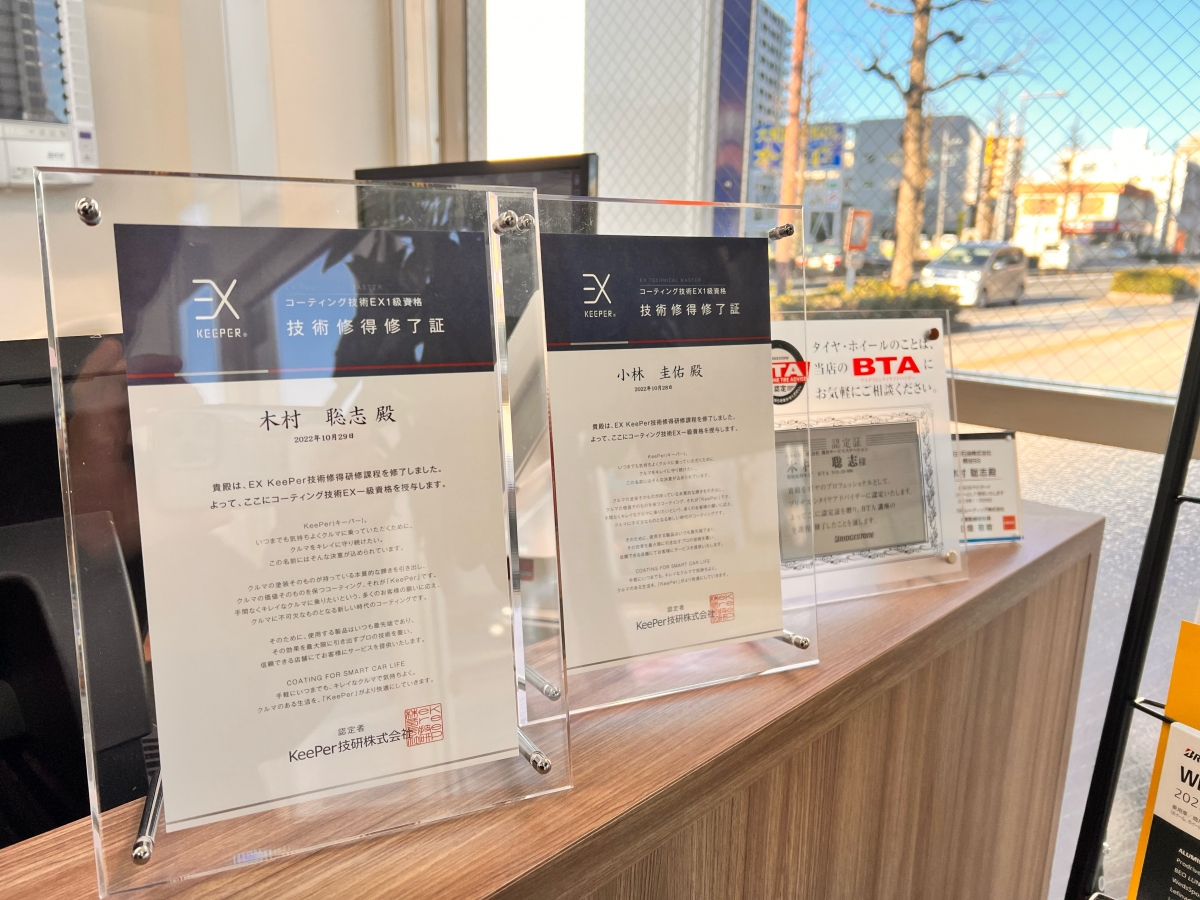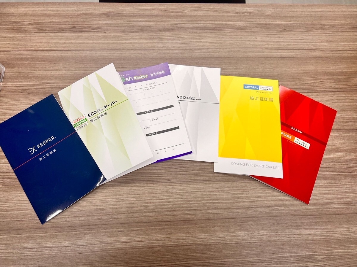 当店では全てのコーティングに施工証明書を発行しています。