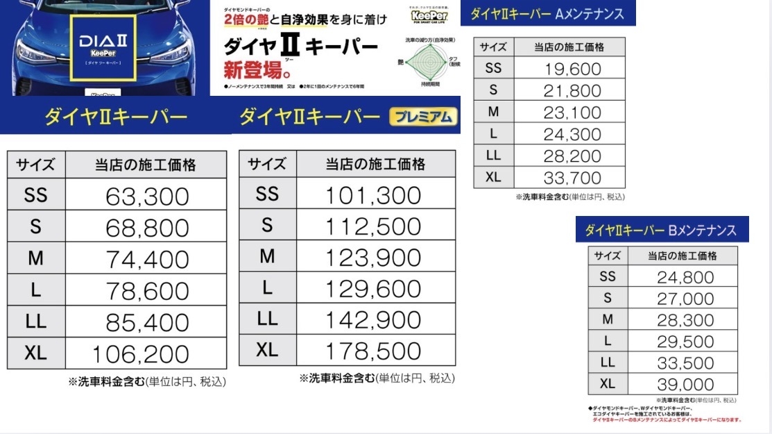 ※キーパー施工車の金額は変わりませんのでご注意ください。