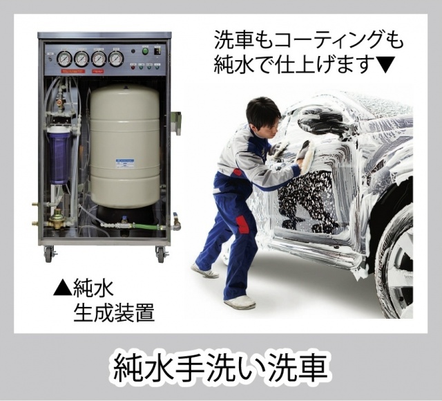 当店の洗車、コーティングの仕上げ工程すべてにおいて「純水」を使用します。