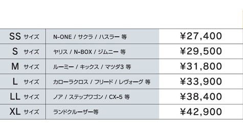 『現行型』の体積(全長×全幅×全高)を基準に、形状を考慮したうえで、車種分類表に基づきサイズ分けを行っています。旧型式の車も現行型のサイズ分けに準じます。