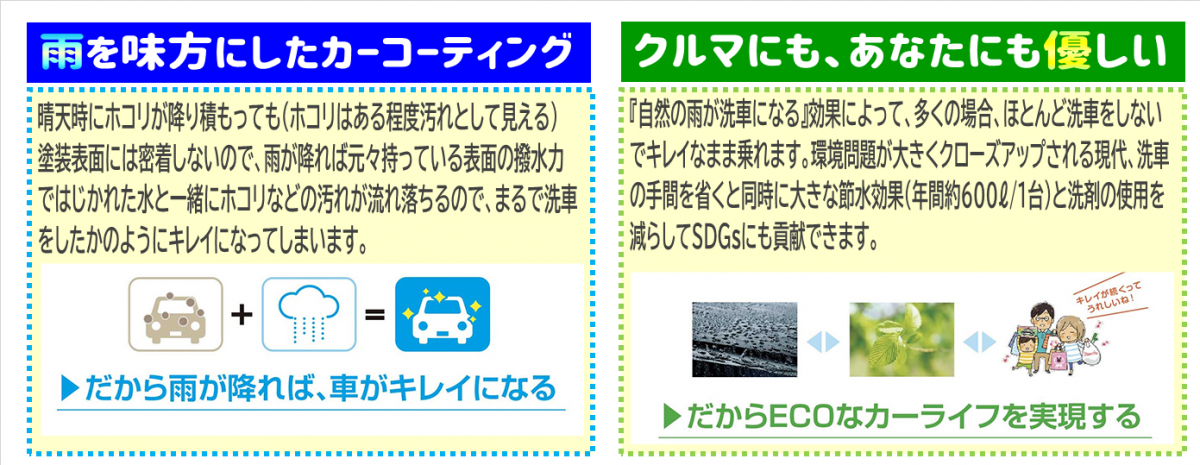ガラス被膜が無機質の為、酸性雨や紫外線に対して防護能力を持っています。