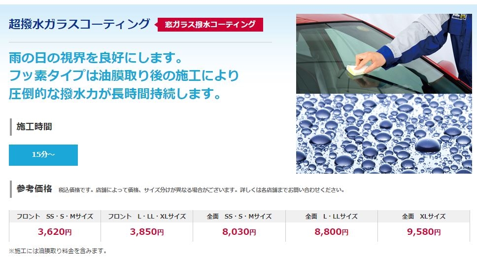 フロントガラスのみ:SS~Mサイズ3,620円/L~XLサイズ3,850円