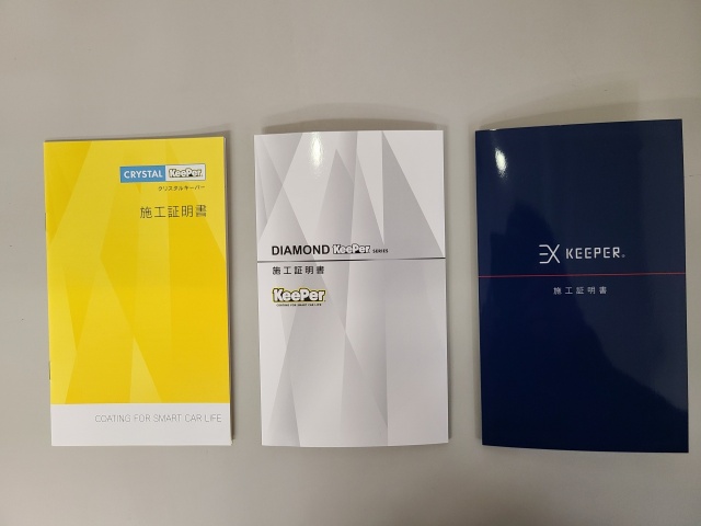当店では全てのコーティングに施工証明書を発行しております。