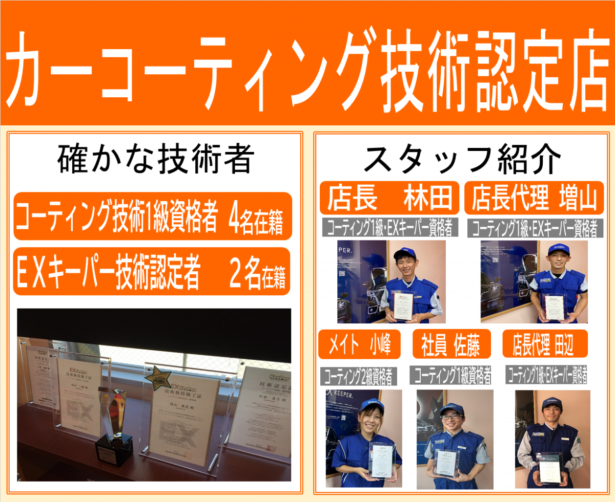 新店ですが、社員全員がコーティング技術認定資格を持っていますので