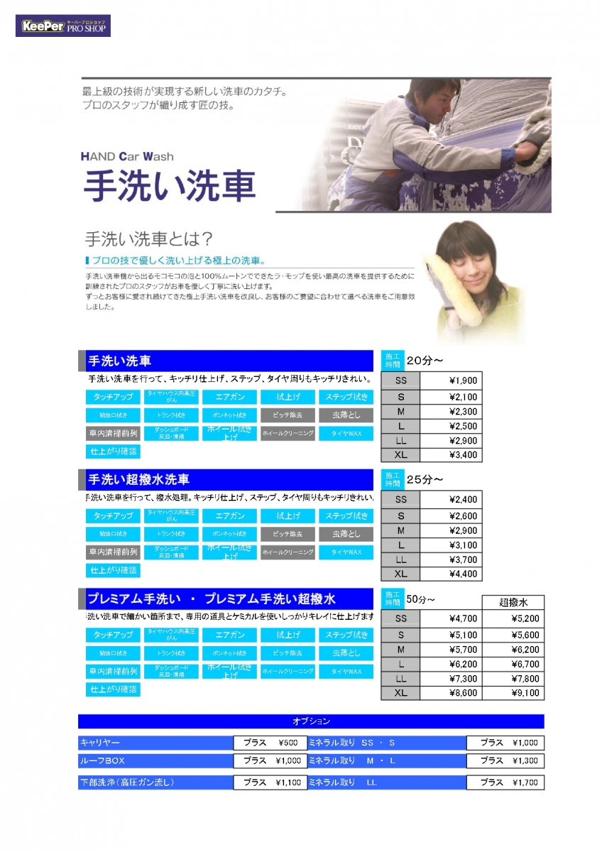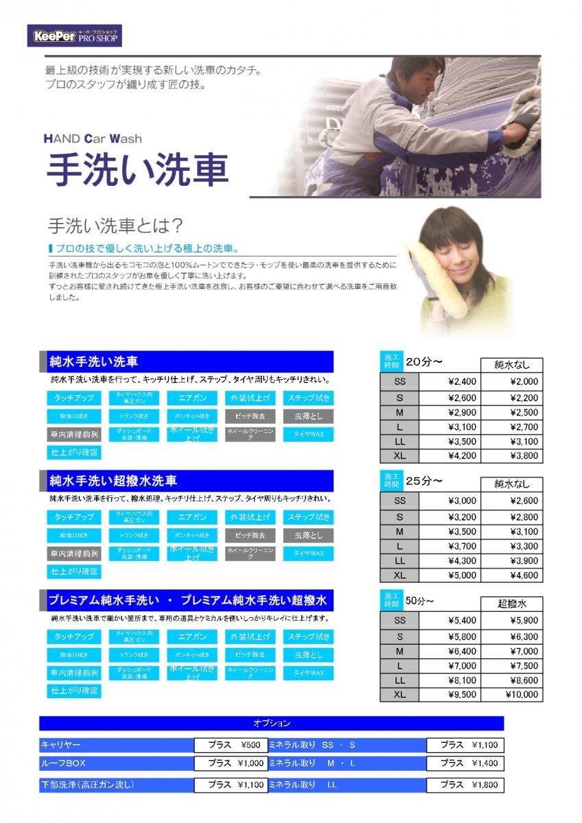 ★手洗い洗車メニュー★