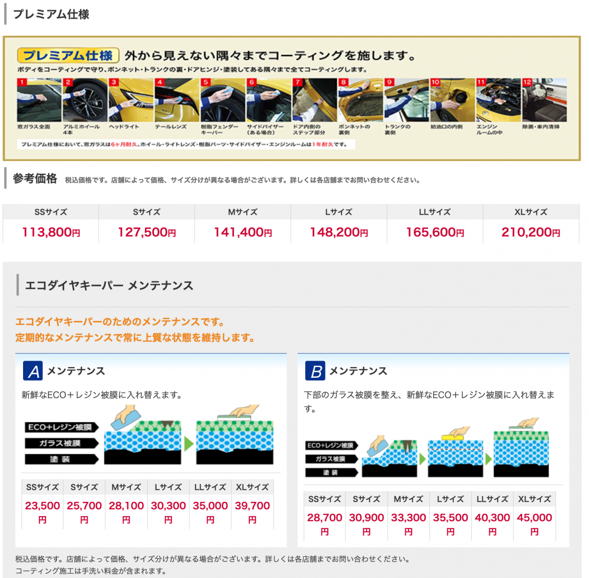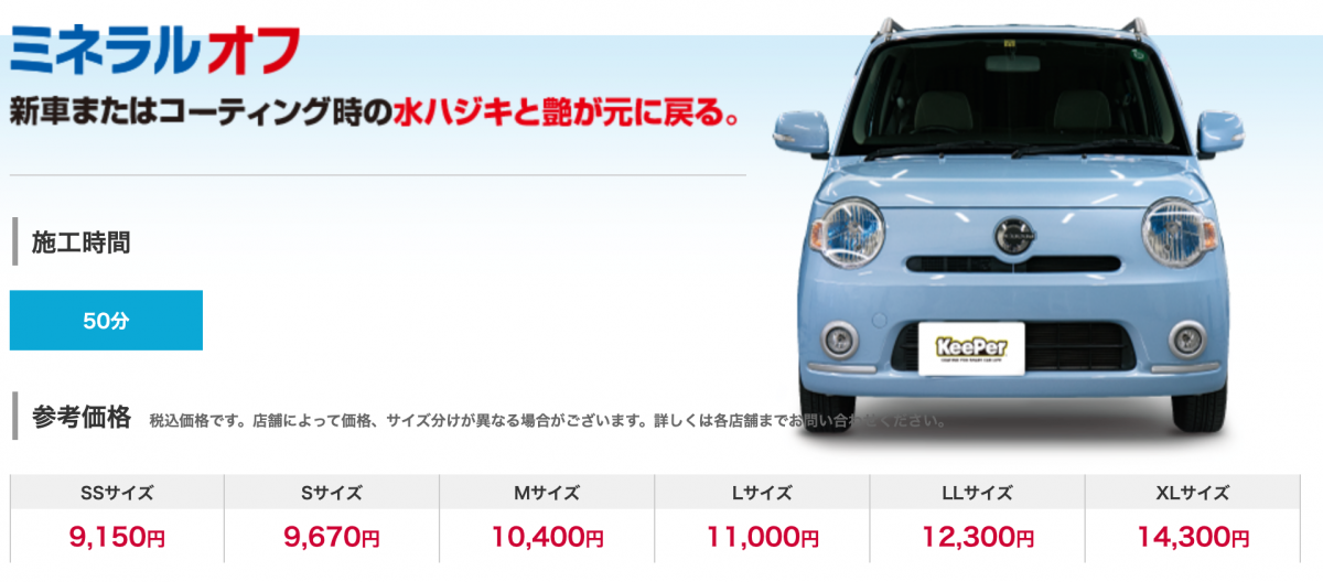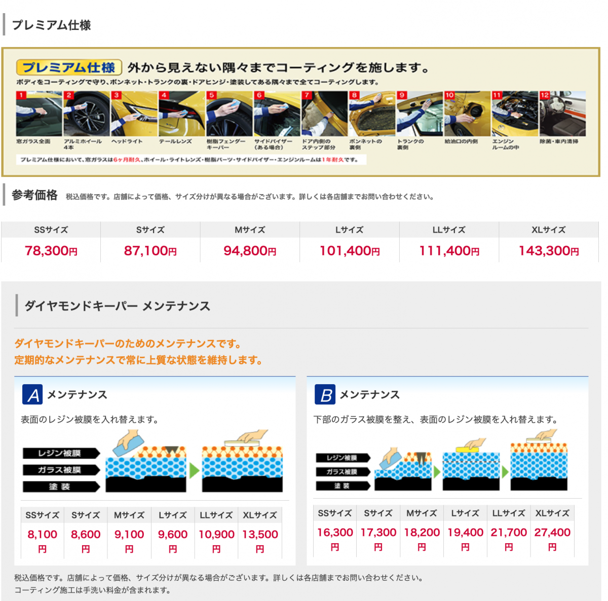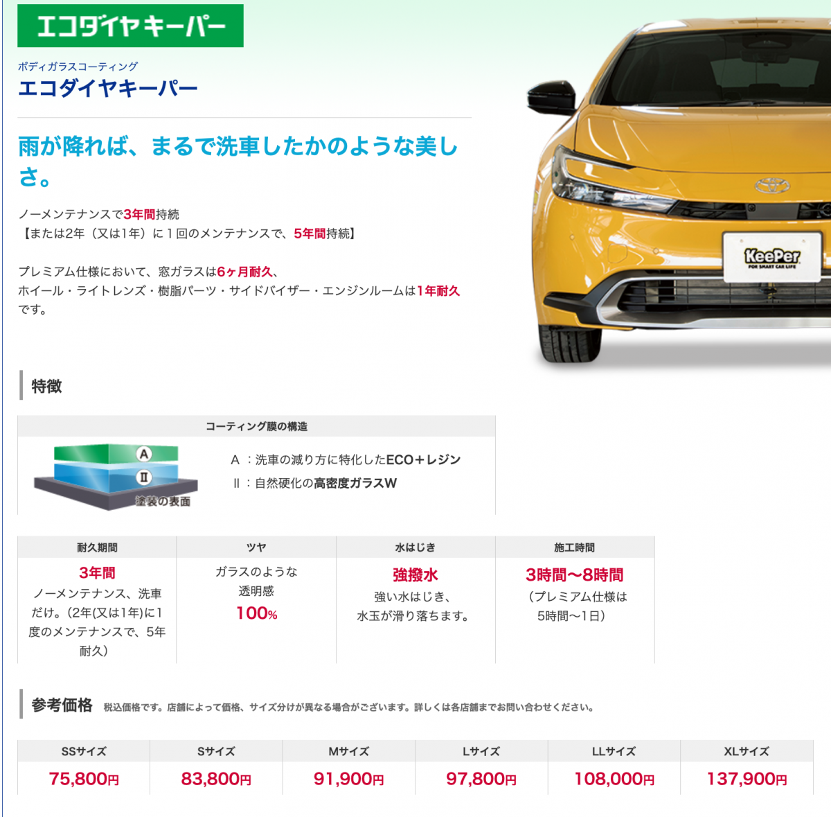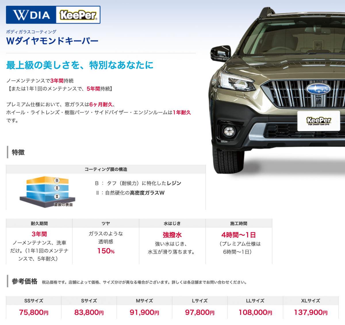 ※キーパー施工車の金額は変わりませんのでご注意ください。