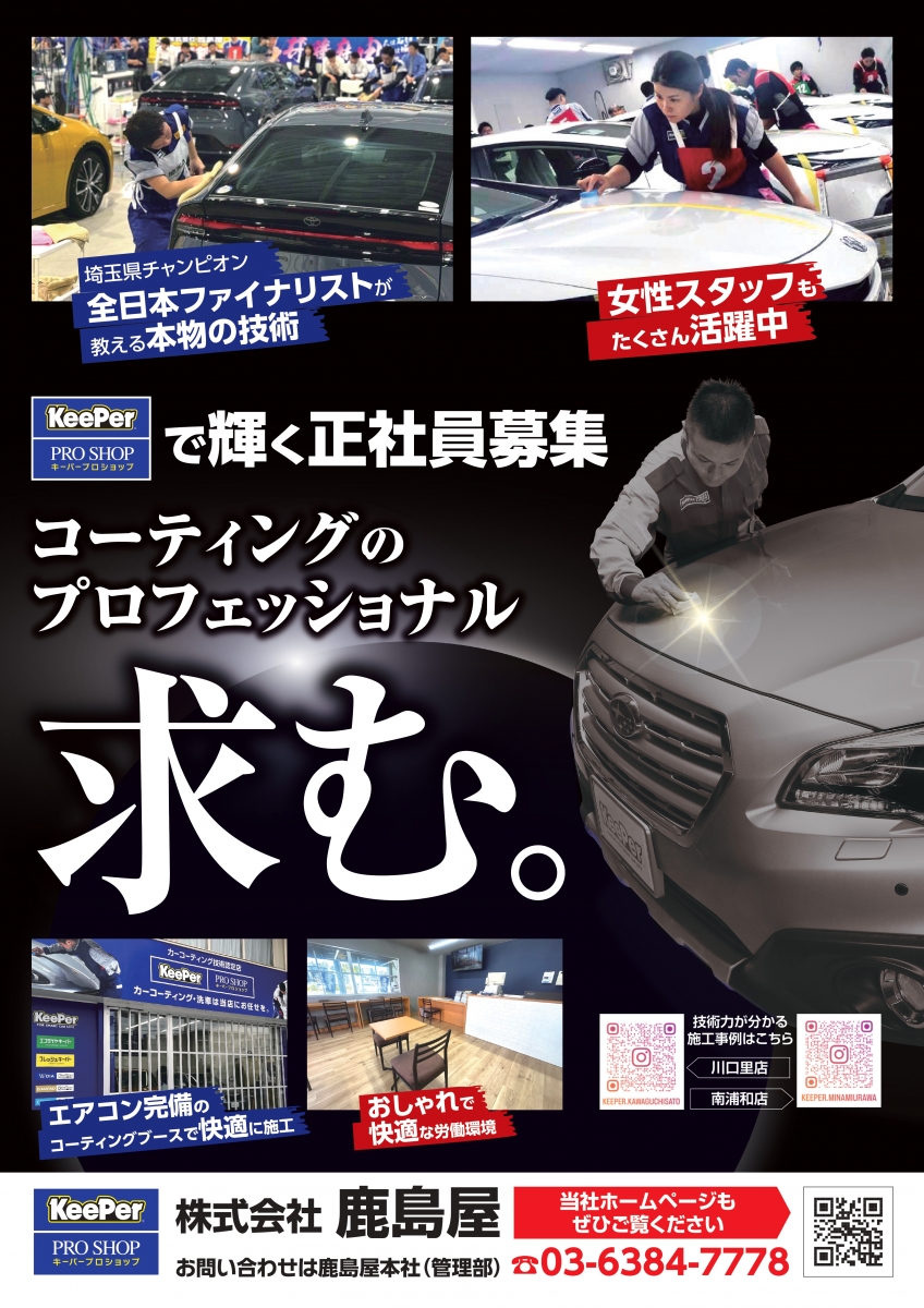 キーパーコーティング以外で施工の場合のメンテナンスは店舗へご相談下さい!