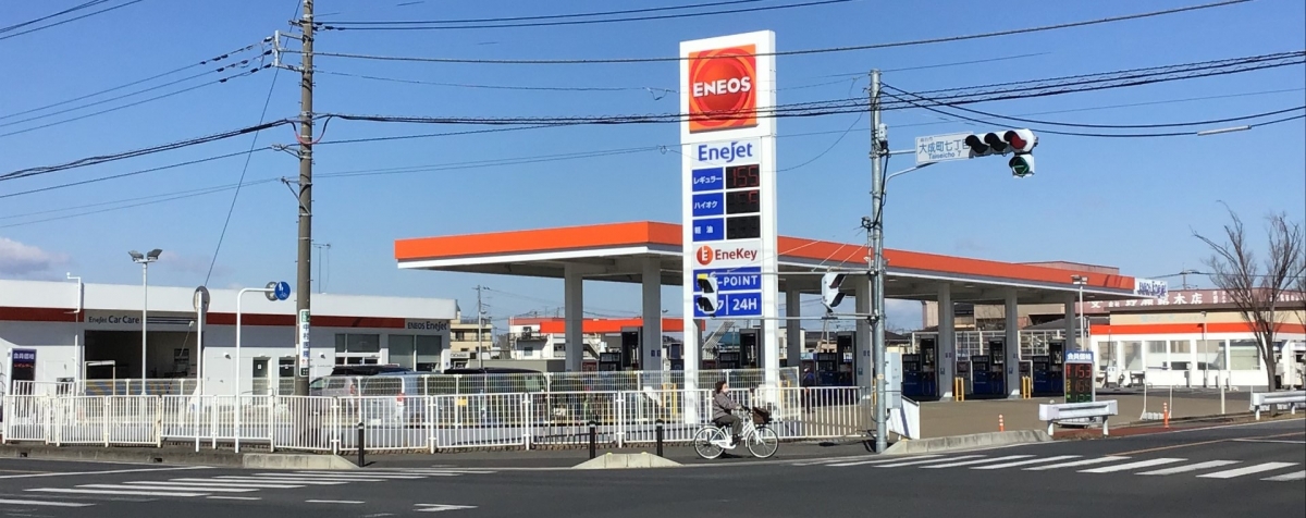 2021年より手洗い・コーティングを再開した同時給油12台の広々としたガソリンスタンドです。