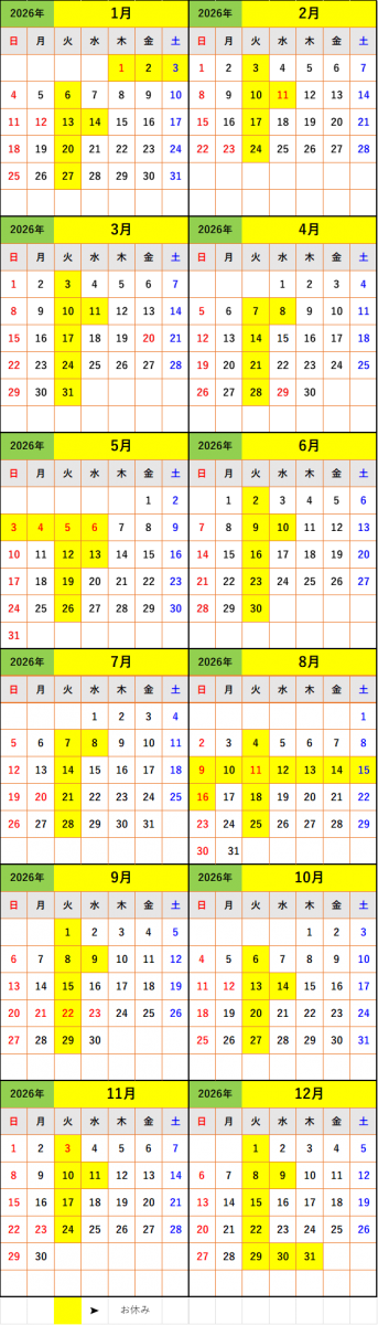 ★営業カレンダー★