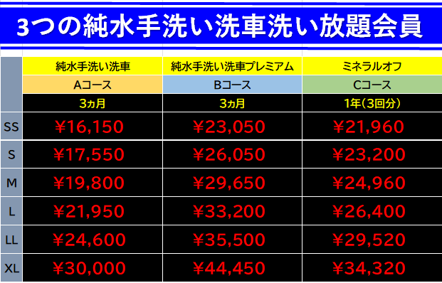 ・Aコース純水手洗い洗車(3ヵ月)