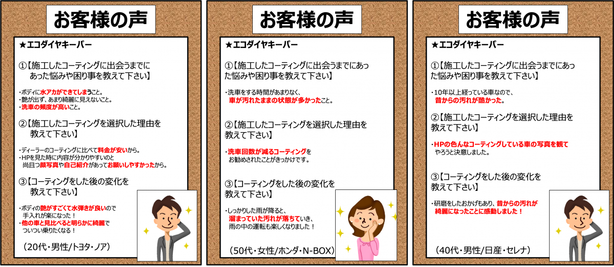 コーティングをしてキレイになった感動を、忘れられない思い出になるように、