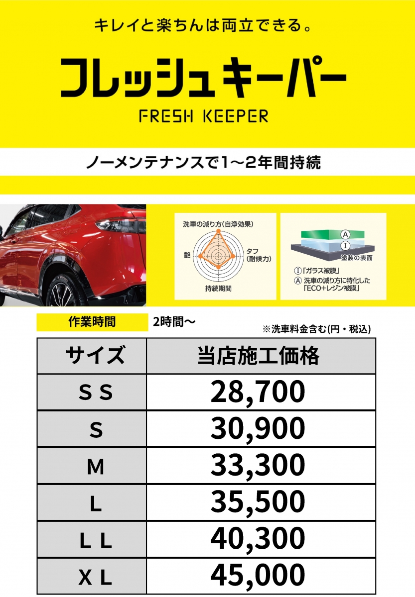 高級車・輸入車でも施工可能なうえに、わかりやすい料金体系と