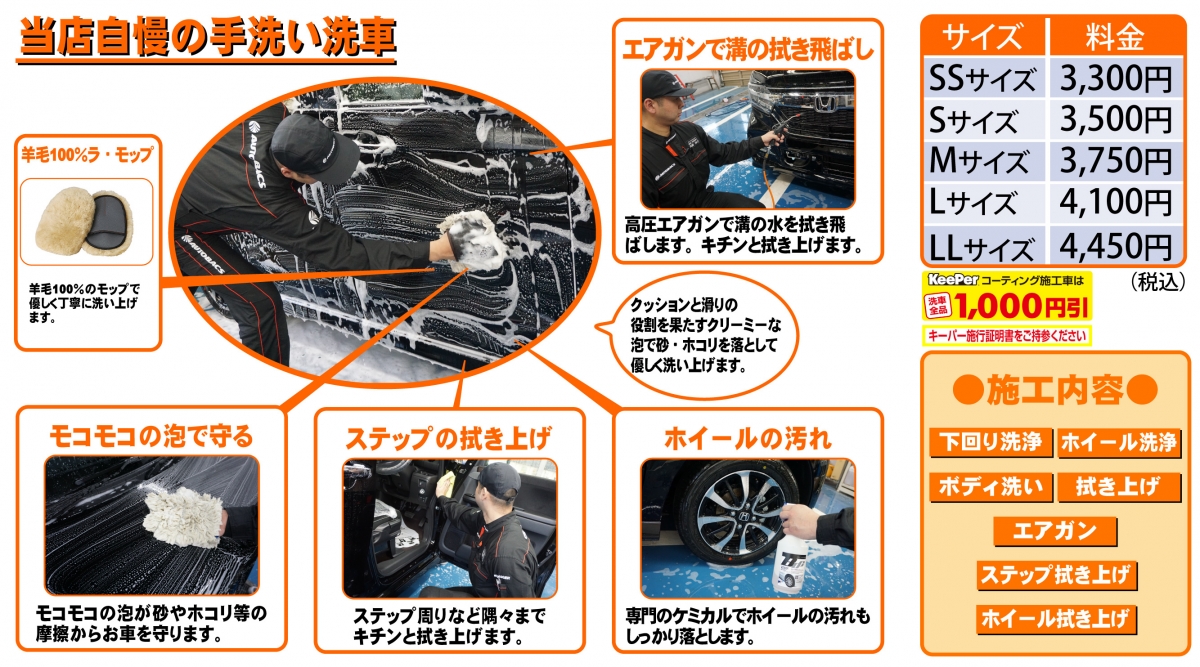 もちろん、手洗い洗車だけのお客様も大歓迎!!