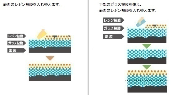ガラス被膜を整えたのち、2層目のレジン被膜を新調いたします。