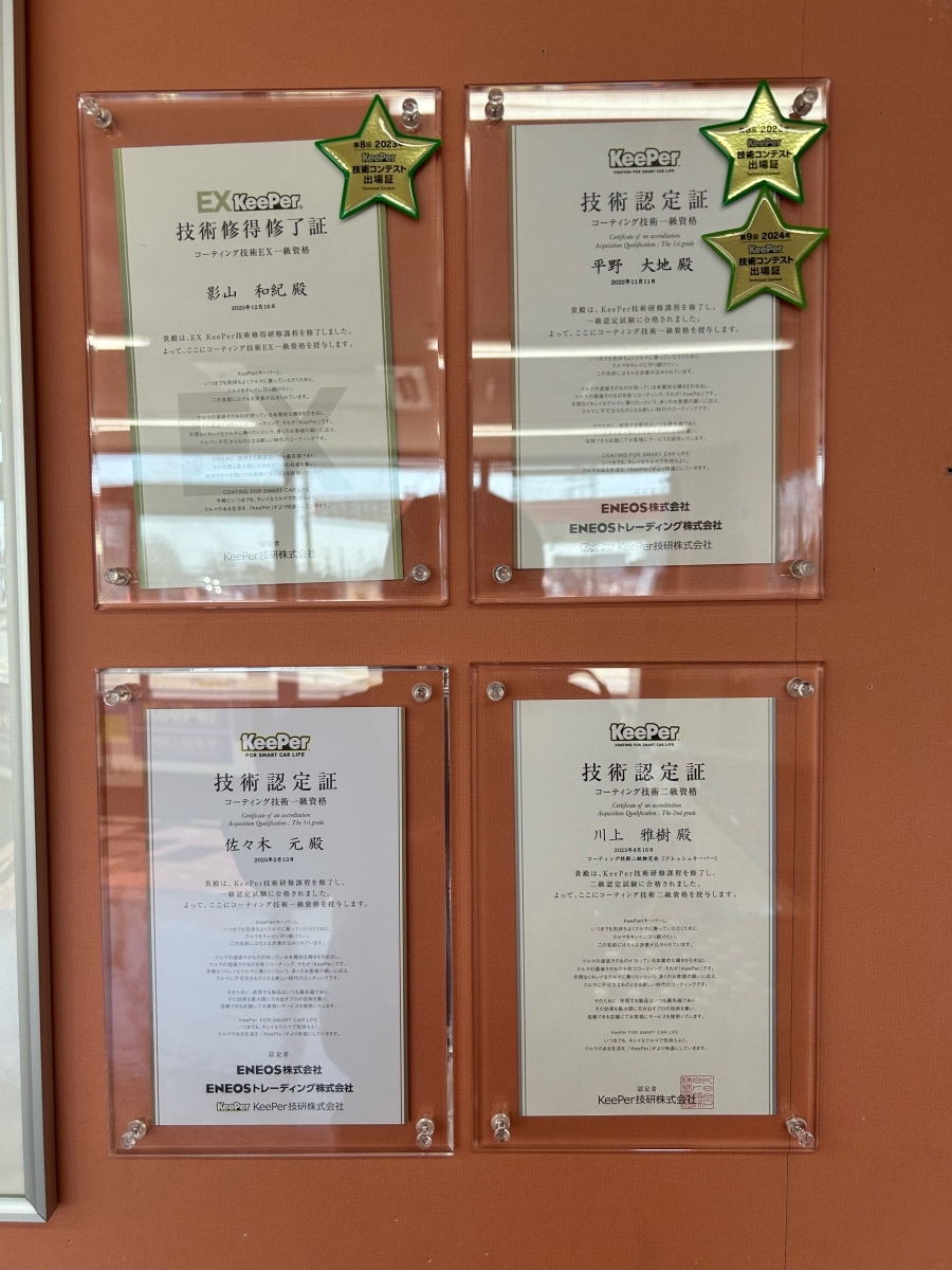 当店ではコーティング技術検定取得者が4名在籍しております。