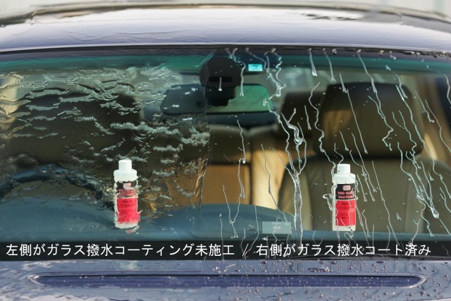 ウィンドガラスについた頑固な油膜を丁寧に除去し、フッ素をコーティングします。
