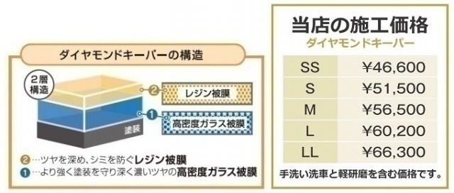 ダイヤモンドキーパーは独特のガラス皮膜と特殊なレジン皮膜の二重皮膜で出来ています。