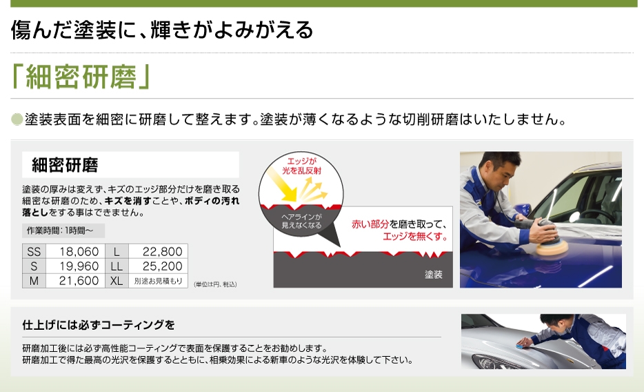 ※新車コーティングも、途中で施工したコーティングもケアできます。