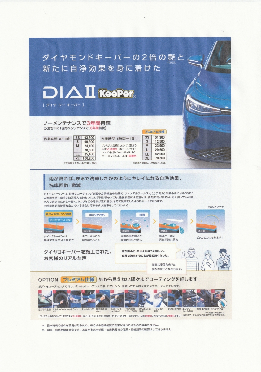 Wダイヤモンドキーパーと同じでノーメンテナンスで3年耐久1年に1回で5年耐久❕❕