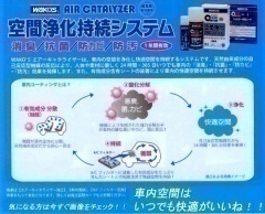天然由来の自己反応型触媒の働きにより、人体や素材に優しく24時間、365日いつでも車内の「消臭」「抗菌」「防カビ」「防汚」効果を発揮します。
