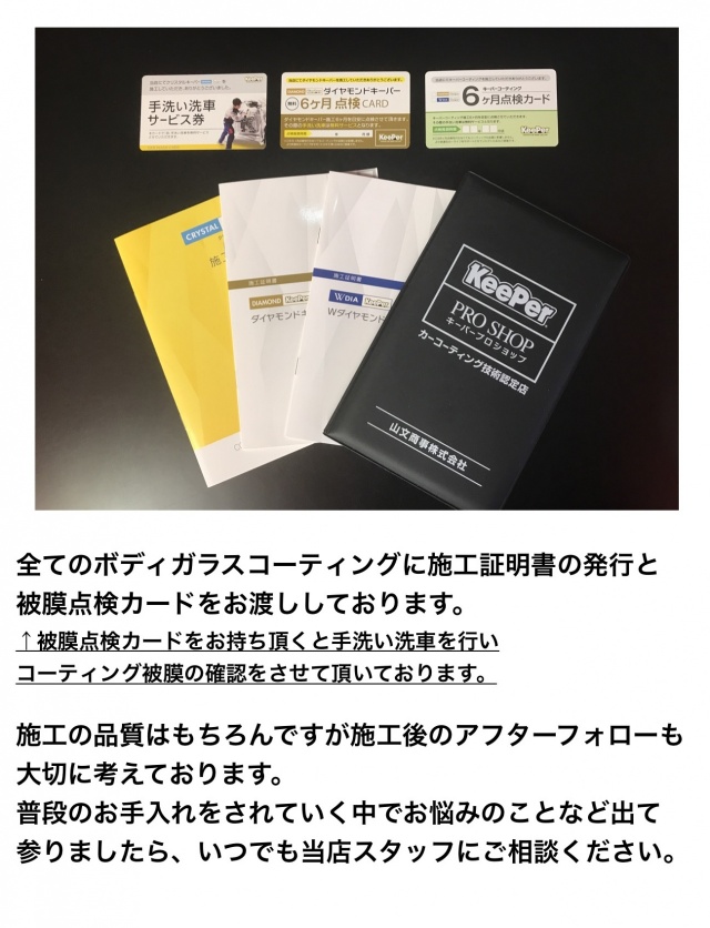 ボディコーティング(ガラス系コーティング・ポリマーコーティング)、窓ガラスコーティング(フッ素ガラスコーティング、シリコンコー ティング)ホイール コーティング、下回り防錆コーティング、エンジンルームコーティング等々コーティングに関することはコーティング技術認定店にお任せください ♪