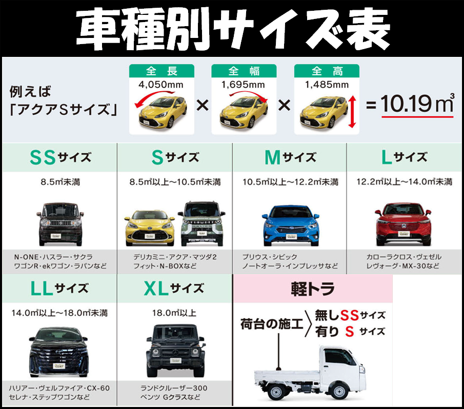 お車のサイズによってお値段が変わります!