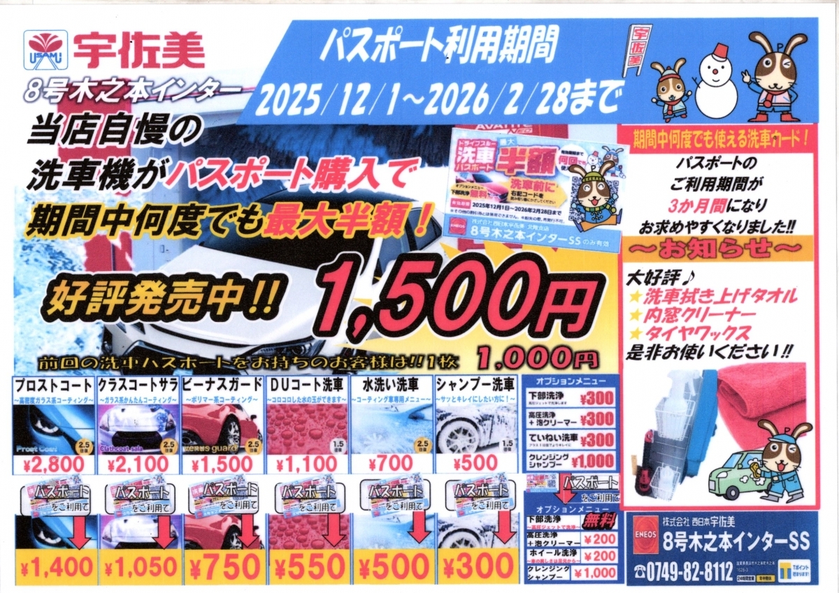 ★洗車機が最大半額になる洗車カードを1500円で販売中