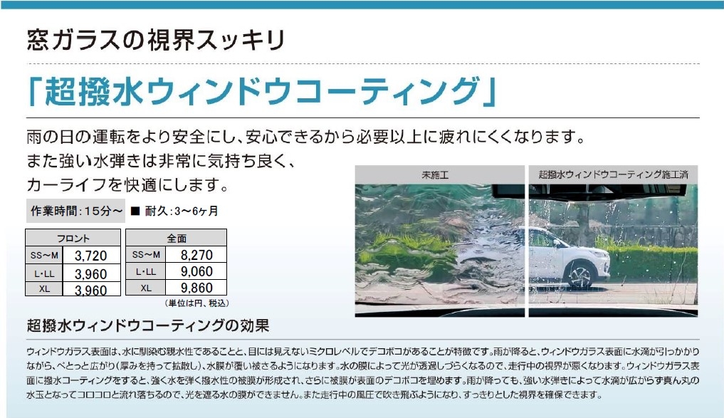 超撥水ウィンドウコーティング・油膜取り・窓ガラスのウロコ取り