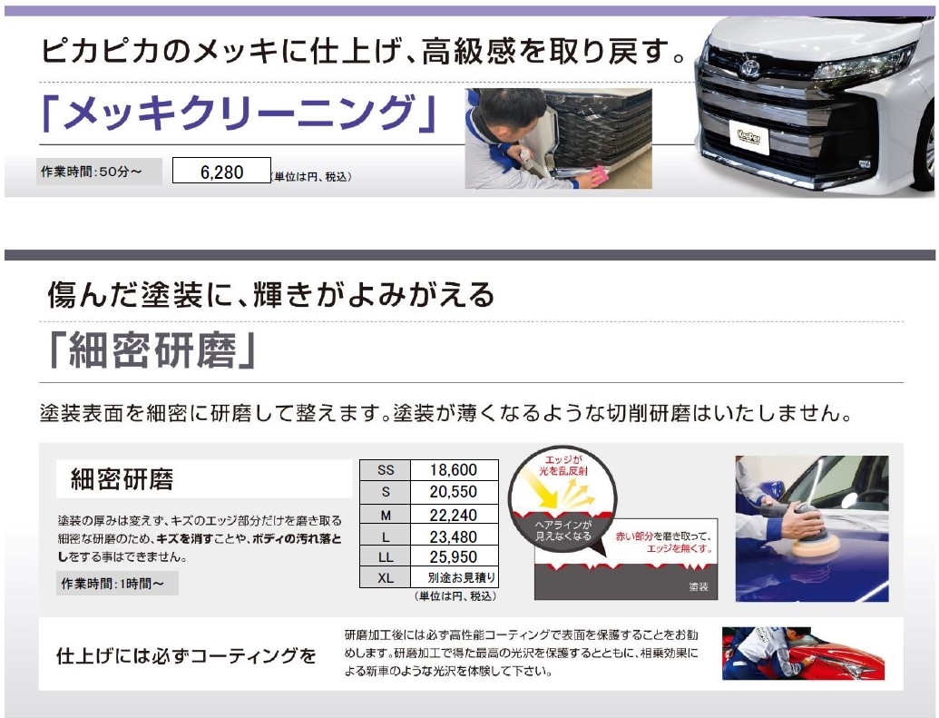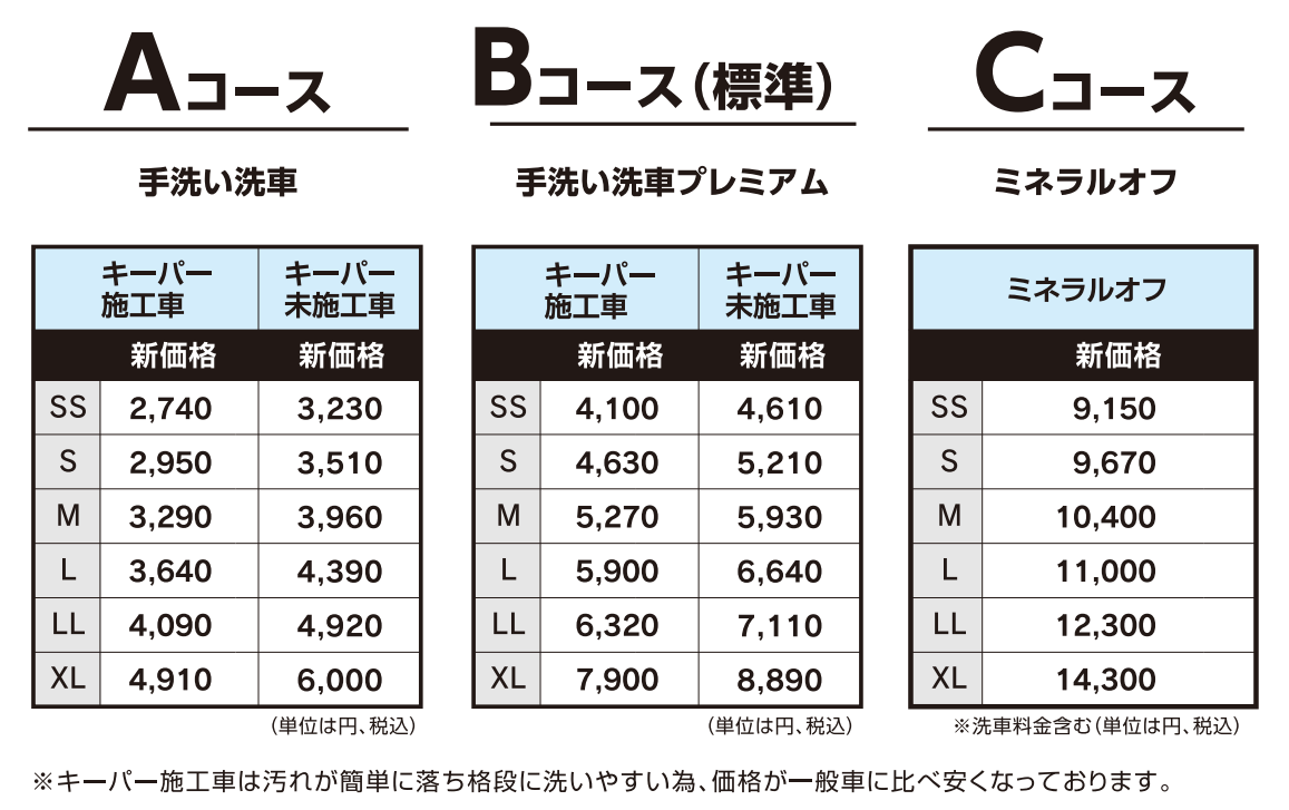下記商品一覧(洗車を除く)は2025年5月1日からの価格となります。