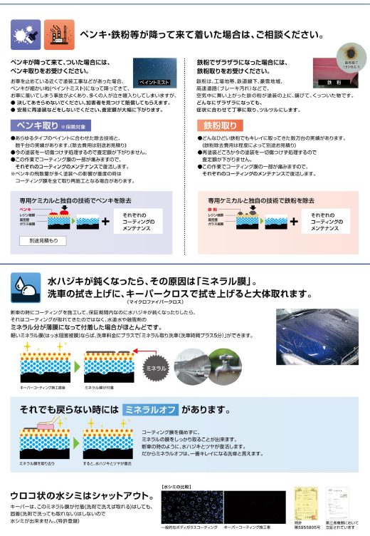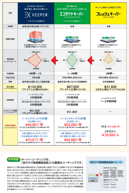 当店では、お客様一人ひとりのご要望やライフスタイルに合わせたコーティングプランをご提案いたします。初めての方にも分かりやすく丁寧に説明し、安心してお任せいただけるよう心掛けています。