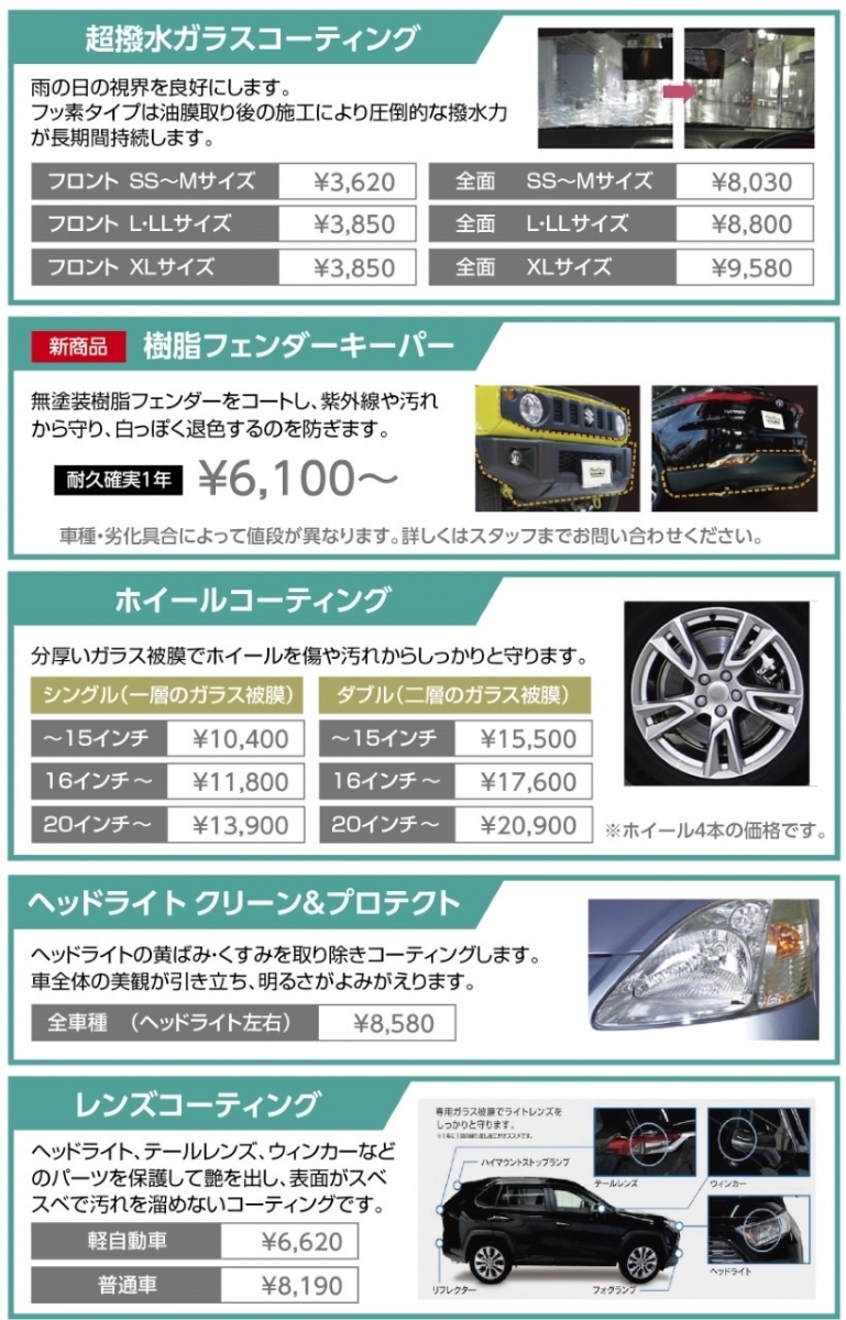 - 洗車・コーティング営業時間