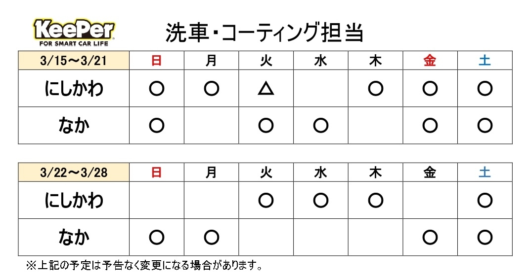 - 洗車・コーティング営業時間