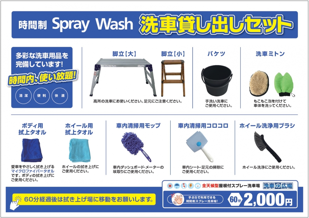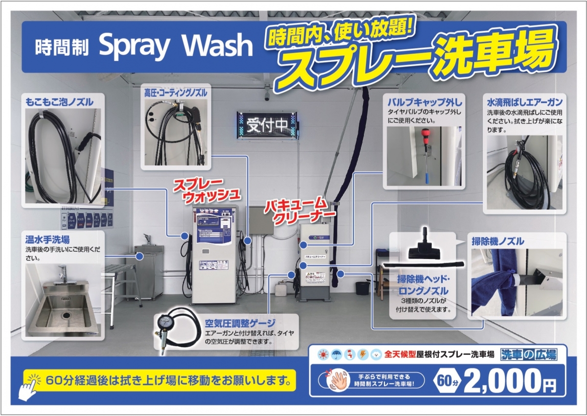 60分2,000円で設備と洗車道具が使い放題『時間制SprayWash』