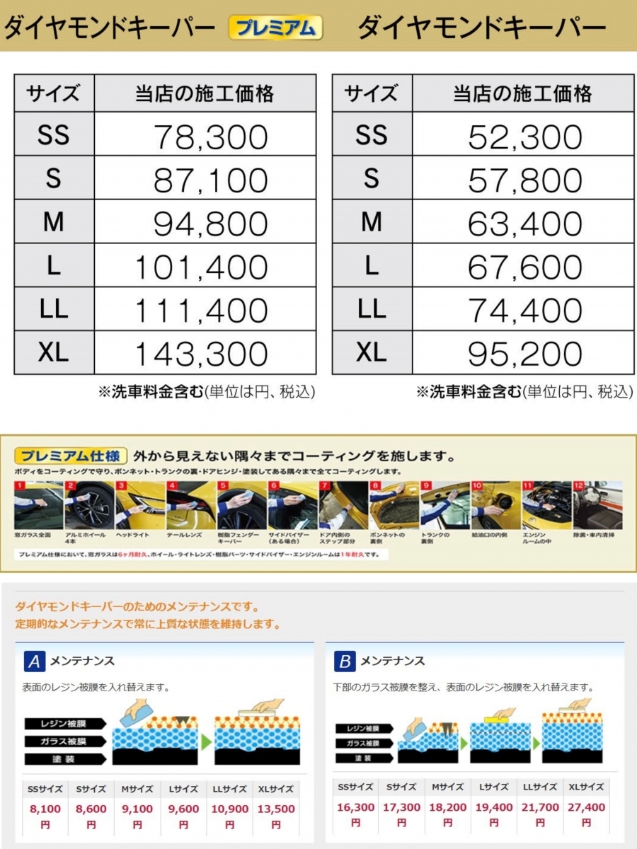 ノーメンテ、洗車だけで、3年間持続目安のプラン