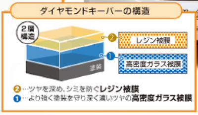 3.高密度ガラス被膜の上を最新のレジン被膜でガード。2層構造の ボディガラスコーティング。