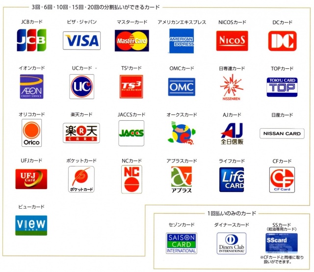 現金でのお支払いはもちろん、各種クレジットカードもご利用いただけます。