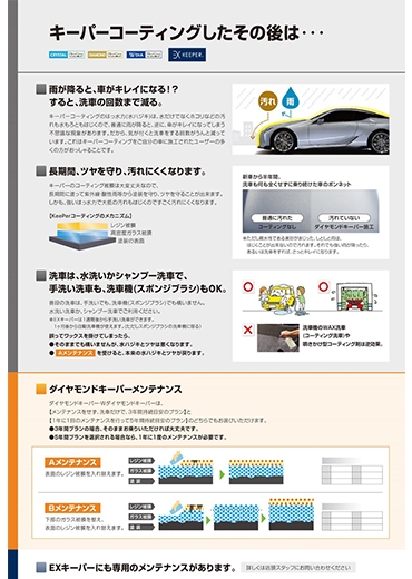 キーパーコーティングの他にも車検、リペア(軽鈑金)、修理、新車、中古車、マイカーリース、自動車保険