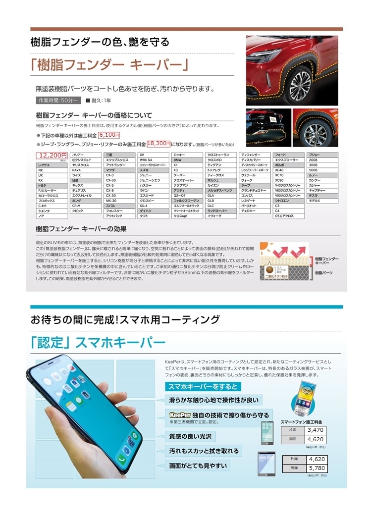少ない人数での営業の為、コーティング(代車あり)が重なってできない場合は電話連絡し日にちを変更させて頂く事があります。