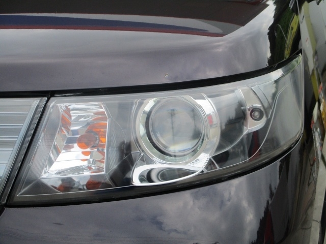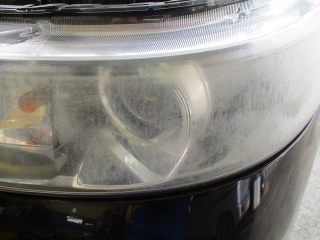 近年のヘッドライトは、ガラスではなくポリカーボネイトというプラスチック素材 が使用されています。 このレンズは、経年劣化により黄色く変色したり、表面の塗装(ハードコート)が 離し曇りなどが発生します。 このような劣化は磨いただけでは、正常な状態に戻りません。 黄ばんだレンズの劣化を除去し、光沢を回復させ、 更にプロテクトガラスコーティングで強力に保護します。