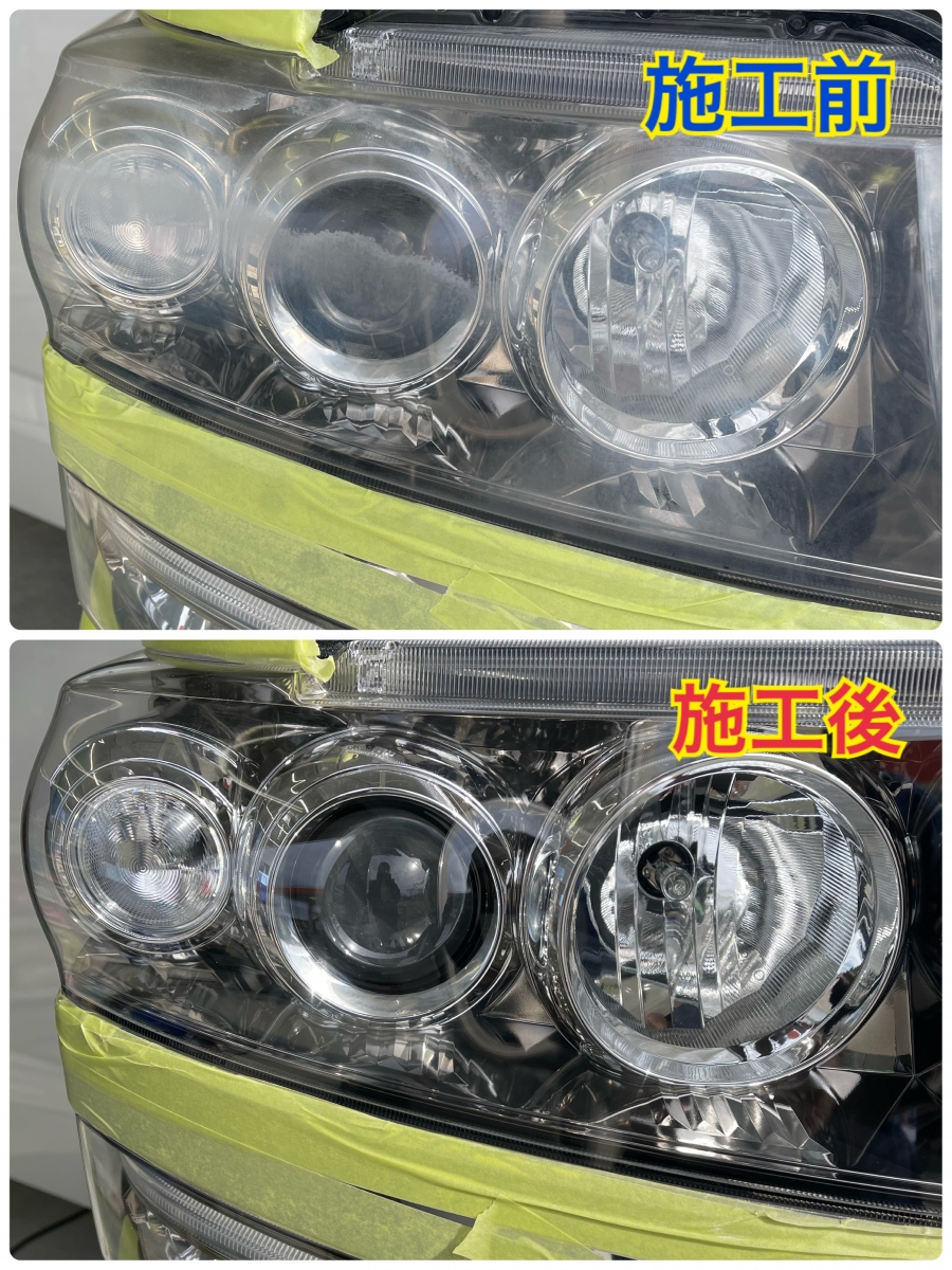 ↓経年劣化で曇っているヘッドライトも新品の様になっちゃいますW(`0`)Wスゲッ!