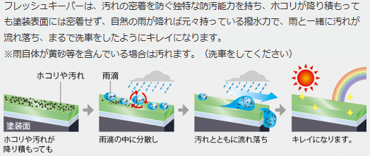 コーティングすれば、水はじきがよくなり、雨が降っても汚れにくくなります。