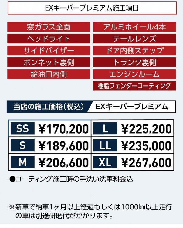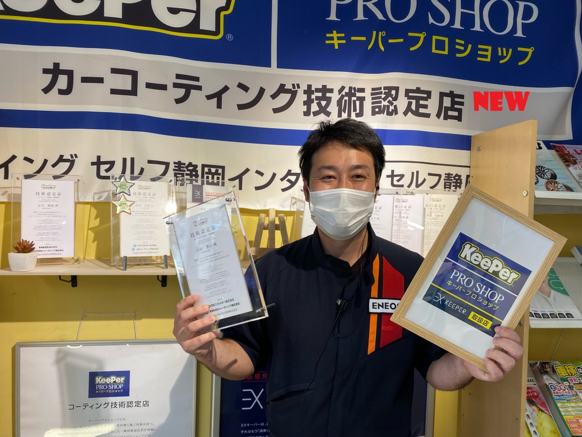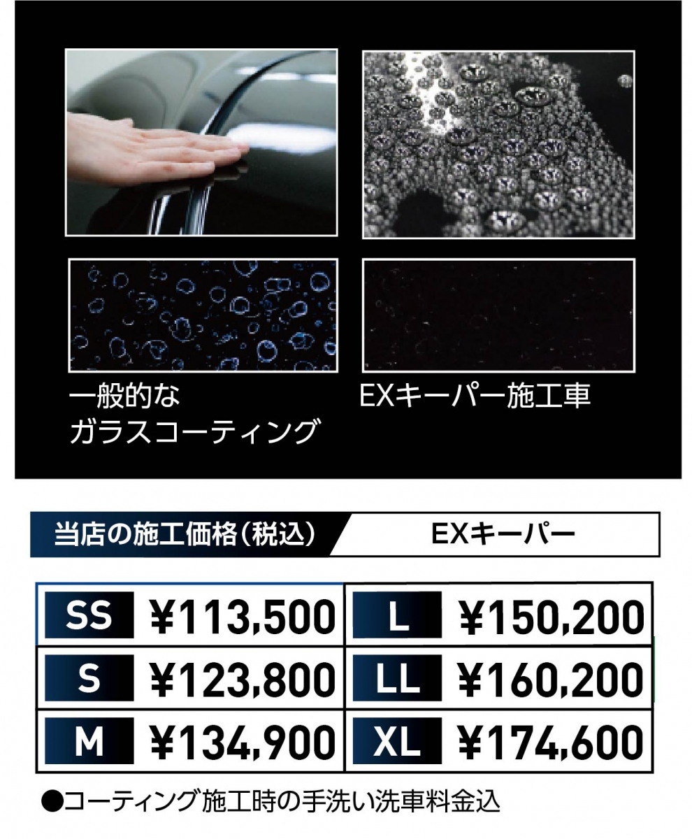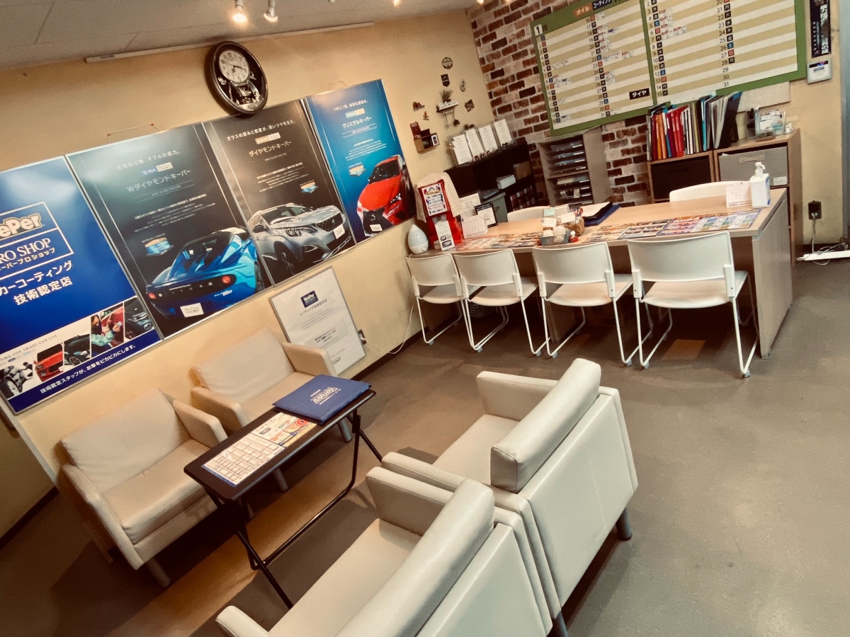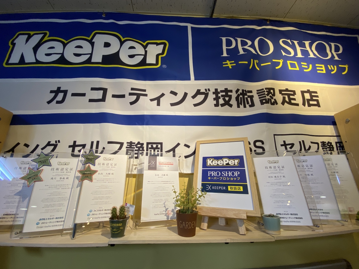 当店はEXキーパー施工認定店となっており、キーパー技術1級取得者6名(内EXキーパー施工技術1級4名)が在籍しております。またコーティングブースも完備しており、コーティング施工中に雨や砂埃等が付着しないように専用の施設内にて施工を行っております。