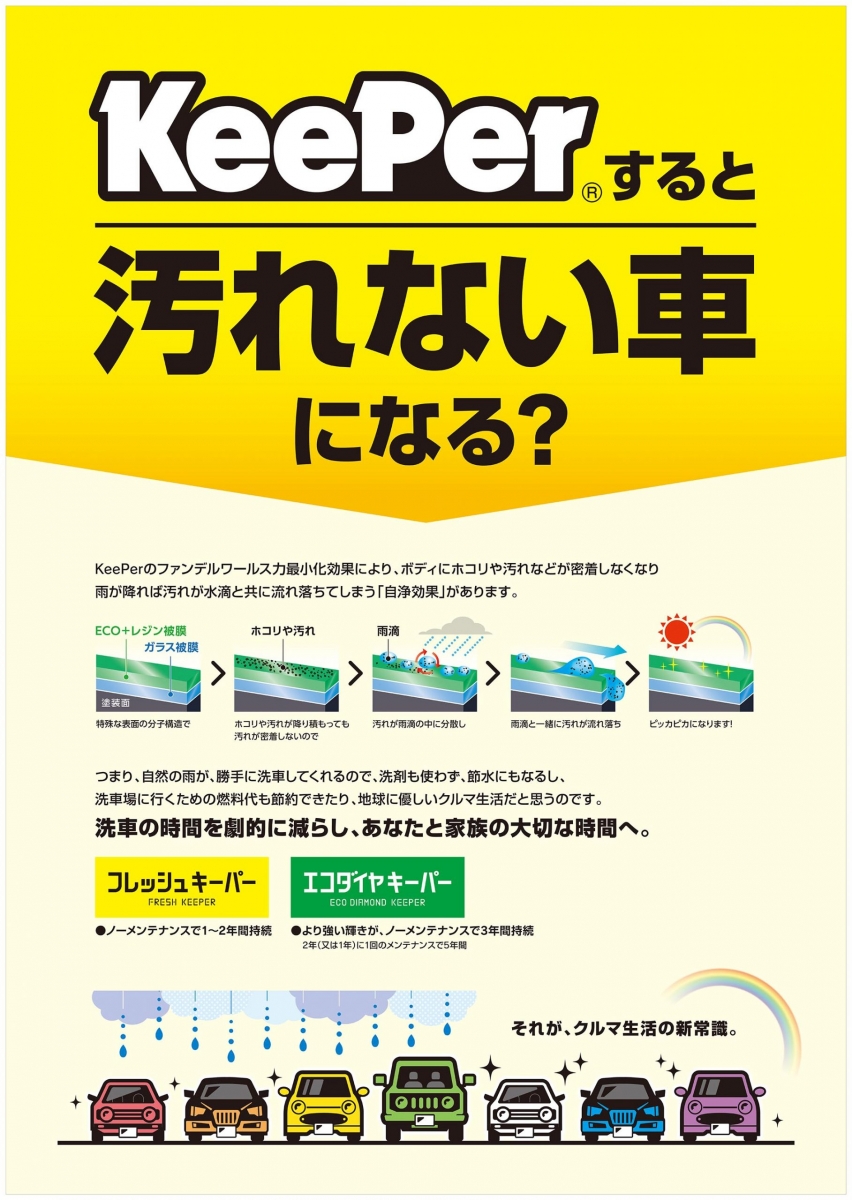 整備工場併設店だから車検と一緒にキーパーコーティングだって出来ますよ