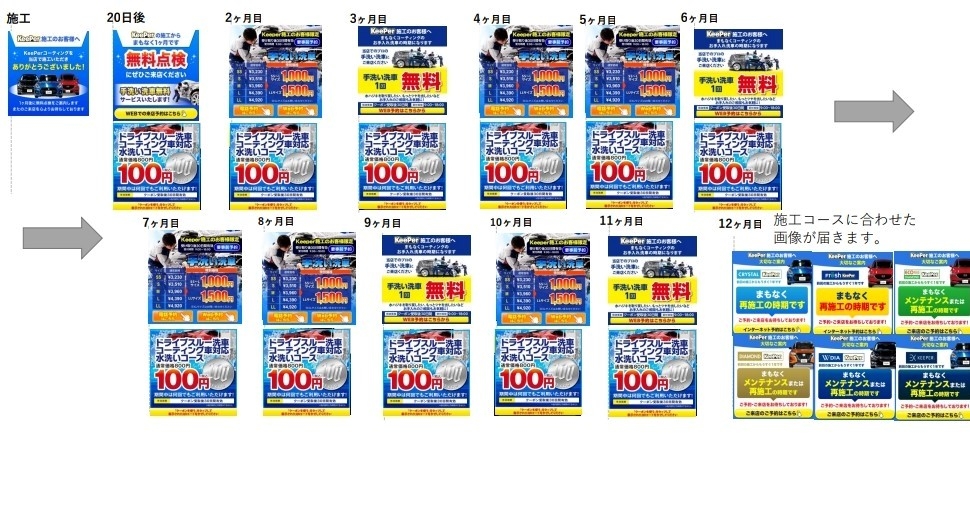 (例:手洗い洗車が耐久年数の間、何回でも特別価格でご利用して頂ける等)